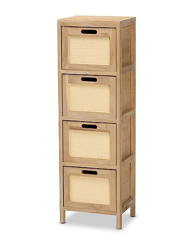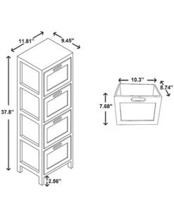 - Accent your interior with the stylish convenience of the Paolo storage unit. this handy piece is comprised of a sturdy wood frame accented with rattan like panel. Four drawers offer on-hand storage to easily declutter and organize busy areas of your home. Requiring assembly, the Paolo features cut-out drawer handles as well as an openwork frame that generates a more open feel in tight spaces. A convenient solution to your needs, the Paolo storage unit is an easy addition to any space. Overall Dimensions: 37.80in High x 11.80in Wide x 9.40in Deep; Drawer Dimensions: 10.30in Wide x 8.70in Deep x 7.70in High; Legs: 2.60in High;