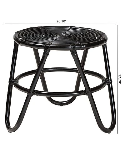 - Permeate your space with the bold, exotic artistry of the Pertessa end table. This boho piece is handcrafted from natural rattan by skilled artisans. Slender rattan rods are expertly coiled to form the round tabletop, while thicker pieces are used to create the striking silhouette. The Pertessa will arrive fully assembled and features hairpin legs for excellent stability and support in visually engaging design. A superb complement for living rooms, lounges, or other shared spaces, the Pertessa end table radiates a composed aura.