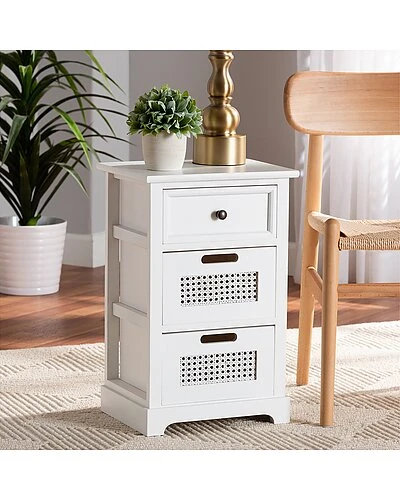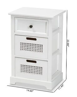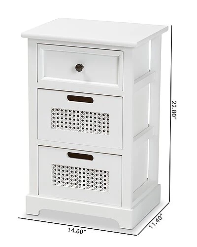 - Convey a modern feel at your bedside with the stunning design of the Pratt nightstand. this nightstand is comprised of a sturdy wood frame adorned with rattan accents. Three drawers provide ample storage space for all your bedtime essentials and reserve the tabletop for nightly use. Comes fully assembled, the Pratt features a chic, openwork frame that exudes modern geometry. A charming solution to your storage needs, the Pratt nightstand updates the modern bedroom. Overall Dimensions: 22.80in High x 14.60in Wide x 11.40in Deep; 1st Drawer Dimensions: 11.00in Wide x 9.40inDeep x 4.50inHigh; 2nd & 3rd Drawer Dimensions: 11.00inWide x 9.40in Deep x6.30in High; Legs: 1.20in High;