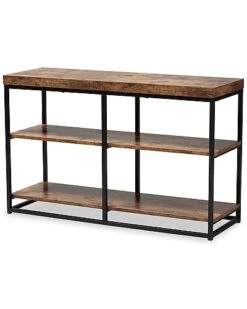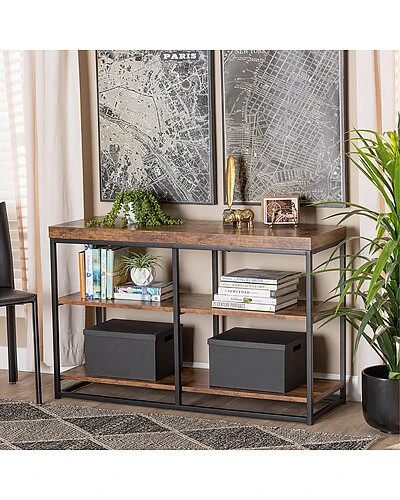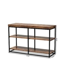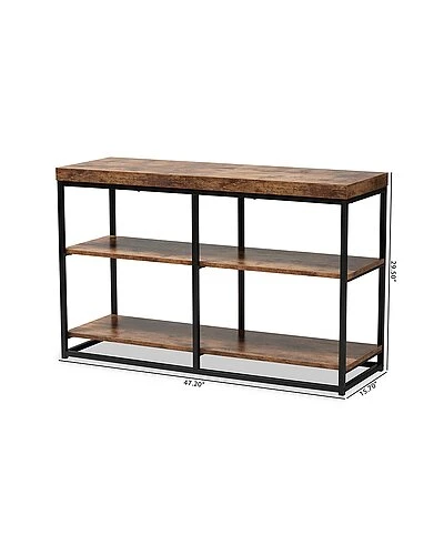 - Showcasing a crisp and clean silhouette, the Bardot console table is sure to bring your interior layout to its potential. this table is comprised of a solid metal base fitted with wood. Three tiers of shelves create a lovely display to organize decorative items while accommodating the needs of your home. The Bardot requires assembly and features a sleek, openwork design that lends a more open feel in tight spaces. Radiating contemporary personality, the Bardot console table is sure to become a staple of your home. Overall Dimensions: 29.50in High x 47.20in Wide x 15.70in Deep