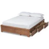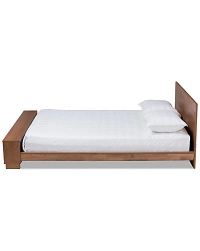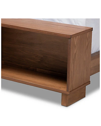 - Create an atmosphere of natural warmth with the Regina bed. Fitted with three spacious shelves at the footboard, the Regina adds convenience to tight spaces. This wood bed is made in Malaysia and includes a paneled headboard, giving the piece a fantastic rustic charm. Assembly is required and a box spring isnt necessary, as the Regina comes with internal slats for mattress support. Sharp craftsmanship and wood give the Regina a strong yet relaxed look that enhances any bedroom. Dimensions: 30.71″ high x 64.96″ wide x 90.55″ deep; Headboard: 30.71″ wide x 64.96″ long x 0.71″ thick; Height from floor to top of slat: 6.1″ high; Inside dimensions (mattress size): 60″ wide x 80″ deep; Storage: 63.78″ wide x 6.69″ deep x 10.04″ high.