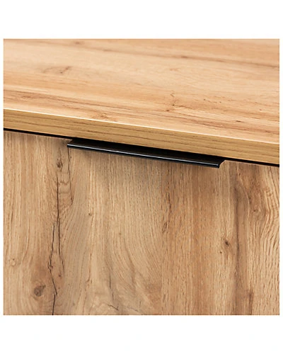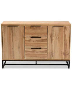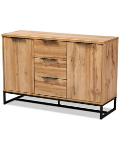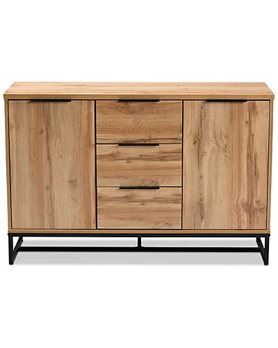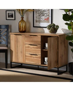 - Design details: With its clean lines and natural wood tones, the Reid buffet is a stylish addition to any space. This wood buffet pairs a natural oak finish with black metal for a cool, contemporary look. Three drawers provide space to store silverware and linens, while four concealed shelves, behind two doors, provide storage for plates and glassware. Long black metal handles add a chic, minimalist touch. The Reid buffet is made in Malaysia and requires assembly.