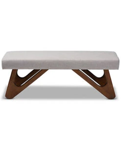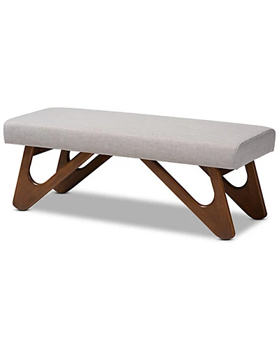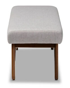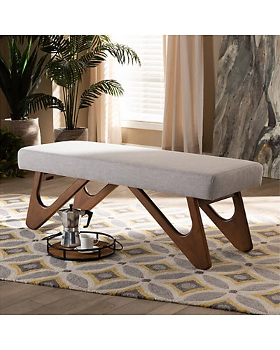 - Design details: Striking from all angles, the Rika bench adds a playful retro flair to any space. Crafted from wood, the Rika is upholstered in a chic greyish beige polyester fabric. Plush foam padding provides comfortable seating. This unique piece features four boomerang-shaped legs, each finished in a walnut brown. Place this work of art in the living room, entryway, or bedroom. The Rika bench is made in Malaysia and requires assembly.