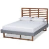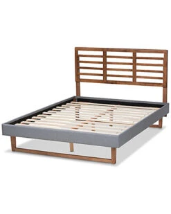 - Bring depth and levity to your bedroom with the contemporary Rina bed. The Rina bed features a wide-set slat headboard comprised of wood, ideal for providing a light and open feel in smaller spaces. Made in Malaysia, the Rina includes an upholstered platform base fitted with wooden slats, eliminating the need for a box spring. The Rina requires assembly and comes with six pre-drilled holes on the headboard to provide five unique height options for a customized setup. Bring a cozy yet stylish ambiance to any bedroom with the inviting Rina bed. Dimensions: 58.3″ high x 79.5″ wide x 83.4″ deep; Headboard: 58.3″ wide x 78.1″ long x 0.9″ thick; Height from floor to top of slat: 11.8″ high; Legs: 9.1″ high; Inside dimensions (mattress size): 76″ wide x 80″ deep.