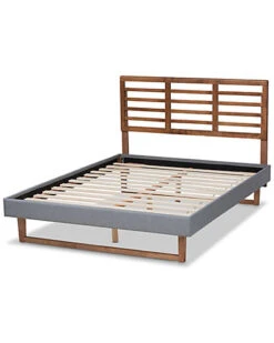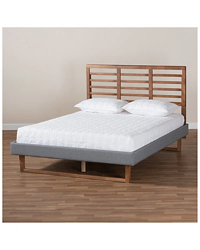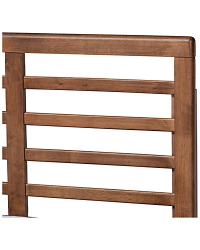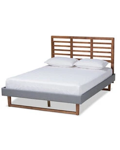 - Bring depth and levity to your bedroom with the contemporary Rina bed. The Rina bed features a wide-set slat headboard comprised of wood, ideal for providing a light and open feel in smaller spaces. Made in Malaysia, the Rina includes an upholstered platform base fitted with wooden slats, eliminating the need for a box spring. The Rina requires assembly and comes with six pre-drilled holes on the headboard to provide five unique height options for a customized setup. Bring a cozy yet stylish ambiance to any bedroom with the inviting Rina bed. Dimensions: 58.3″ high x 63.8″ wide x 83.4″ deep; Headboard: 58.3″ wide x 61.2″ long x 0.9″ thick; Height from floor to top of slat: 11.8″ high; Legs: 9.1″ high; Inside dimensions (mattress size): 60″ wide x 80″ deep.