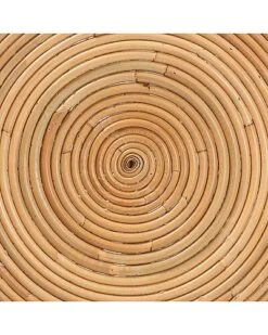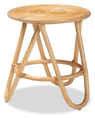 - Imbue your space with the soothing tones and exotic artistry of the Rinjani end table. Made in Indonesia, this handy piece is handcrafted from natural rattan by skilled artisans. Slim rattan rods are expertly curled to form the round tabletop, while thicker pieces are used to create the striking silhouette of the table. The Rinjani will arrive fully assembled and features sturdy, hairpin legs for excellent stability and support. A wonderful complement for a living room or lounge area, the Rinjani end table radiates an aura of serenity.