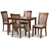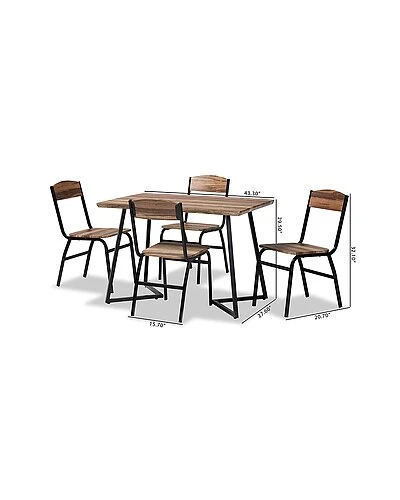 - Fulfill the needs of your space while fostering a sleek, modern atmosphere with the remarkable design of the Roana dining set. this set includes four chairs and one table comprised of sturdy metal frames fitted with smooth wood. The smooth angles of the chairs accentuate the crisp, geometric base of the table to form a dynamic visual aesthetic. Requiring assembly, the Roana utilizes a broad, rectangular tabletop that offers plenty of elbow room to each member of the table. A stunning rendition of modern design with unique personality, the Roana dining set elevates any meal. Overall Table Dimensions: 29.50in High x 43.30in Wide x 27.60in Deep