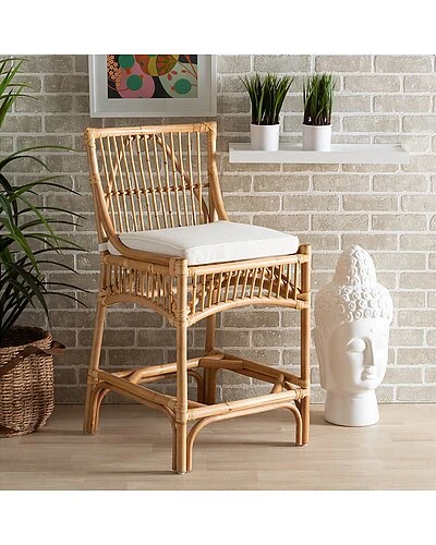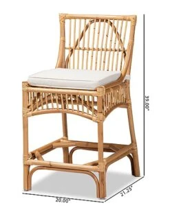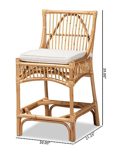 - The carefree charm of the Rose counter stool brings a soothing atmosphere to any space. Made in Indonesia, this stool is comprised of a natural rattan frame adorned with bamboo-like embellishments. Its seat features a plush cushion padded with soft foam and upholstered in smooth fabric for exceptional comfort. The Rose will arrive fully assembled and features an ergonomic footrest on each side to accommodate any occasion. With an exquisite outline and laidback design, the Rose counter stool lends a tranquil ambiance to any home bar or lounge.