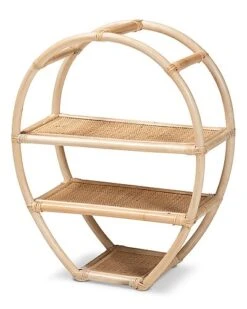 - Liven up your interior with the eye-catching yet efficient design of the Ruana display shelf. Made in Indonesia, this shelf is comprised of a rattan frame fitted with woven shelves. Three tiers of shelves create a stunning platform to organize and display decorations or household essentials. The Ruana will arrive fully assembled and features a unique, rounded frame inspired by exotic craftsmanship. A handy yet visually striking addition, the Ruana display shelf organizes your space in extraordinary style.