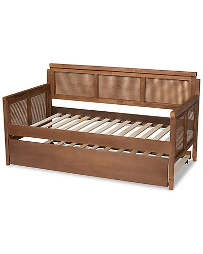 - Design details: Cultivate a vintage chic vibe in your living room or guestroom with the Toveli daybed. This charming wood daybed features a walnut brown finish that adds warmth to any space. Panels of exquisitely woven synthetic rattan create a cozy, airy ambiance. Spade feet add a refined look. Stylish and versatile, the Toveli is fitted with a pull-out trundle to provide convenient accommodation for overnight guests. The Toveli daybed is made in Malaysia and requires assembly.