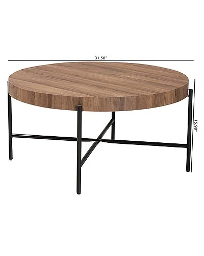 - Introduce a visually impactful anchor to your space with the stunning Umar coffee table. This handy piece radiates industrial style with a solid metal base topped with a wood tabletop. The circular tabletop provides ample space for living room essentials while a touch of smooth geometry to your interior. The Umar requires assembly and features metal legs connected by a crisscross base for excellent stability and support. An efficient piece characteristic of modern minimalism, the Umar coffee table is a fantastic addition for any common space.