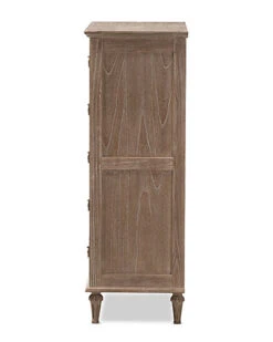 - Design details: hardwood (bayur) veneer (mindi) and MDF construction; five spacious drawers
