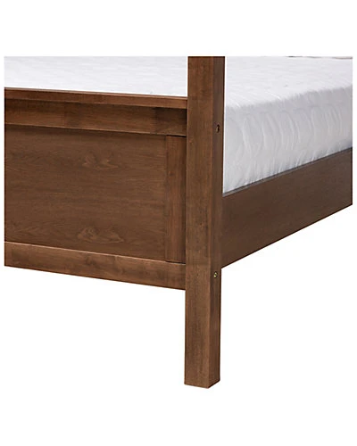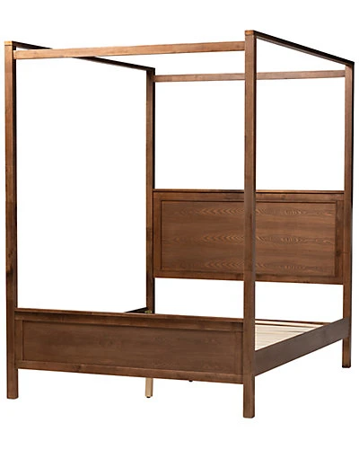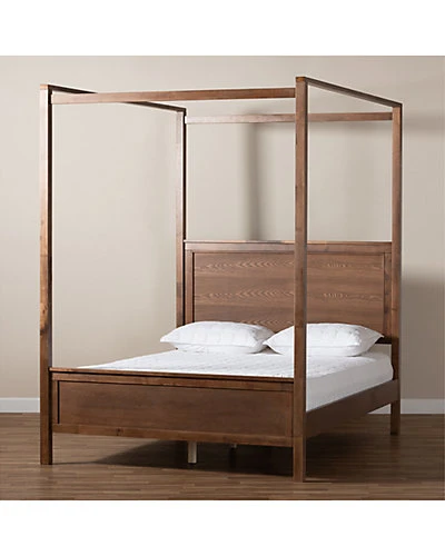 - Design details: Develop your bedroom into an adored space with the extraordinary Veronica canopy bed. The Veronica features excellent wood craftsmanship with inset paneling in a smooth walnut brown finish. Made in Malaysia, the Veronica is raised and supported by sturdy wood legs, providing ample storage space underneath the platform. Assembly is required and a box spring isnt necessary, as the Veronica comes with internal slats for mattress support. Decorate the Veronicas tall wood beams with drapes or curtains to create a private haven of comfort in the bedroom. Dimensions: 50.8″ high x 64.2″ wide x 85.4″ deep; Canopy Height: 87.3″ high; Headboard: 27.2″ wide x 64.2″ long x 2.2″ thick; Distance between slats: 3.5″; Height from floor to top of slat: 12.2″ high; Legs: 7.5″ high; Inside dimensions (mattress size): 60″ wide x 80″ deep.