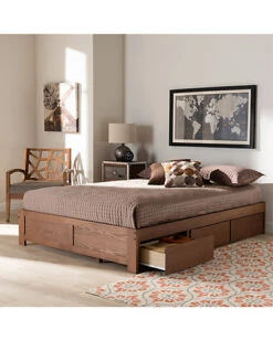 - Design details: Utilize your bedroom space efficiently with the Wren storage bed frame. Crafted from sturdy wood, the Wren displays a classic walnut brown finish. The simple, modern silhouette is enhanced with inset paneling at the footboard, adding a refined look. Designed with both style and function in mind, the bed features three spacious drawers, ideal for storing clothes and extra linens. The Wren storage bed frame is made in Malaysia and requires assembly.