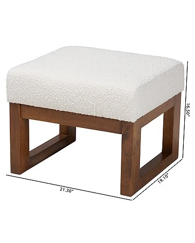 - A superb complement to any cozy corner, the Yashiya ottoman encourages blissful relaxation. this mid-century inspired piece consists of a solid wood frame padded with foam and upholstered in cozy boucle fabric. Its plush cushion serves as a fantastic footstool or extra seat for a versatile piece that accommodates your needs. The Yashiya requires assembly and features openwork legs for excellent stability and support in sleek design. Whether paired with larger layouts or on its own, the Yashiya ottoman is sure to enhance any space.